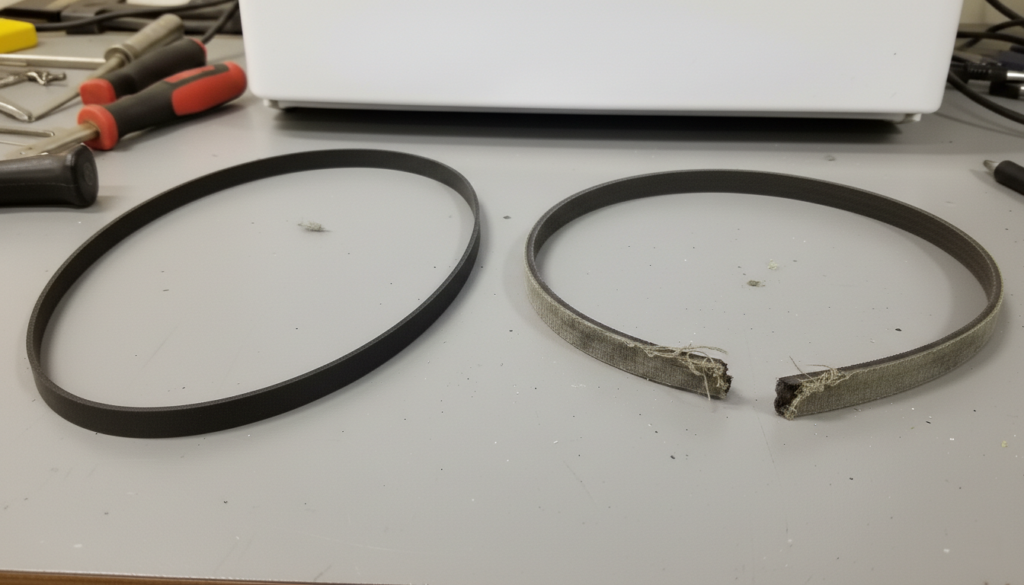 Observez la courroie : est-elle cassée, décrochée ou simplement détendue ? Une courroie détendue peut parfois être repositionnée, mais si elle est abîmée, remplacez-la.