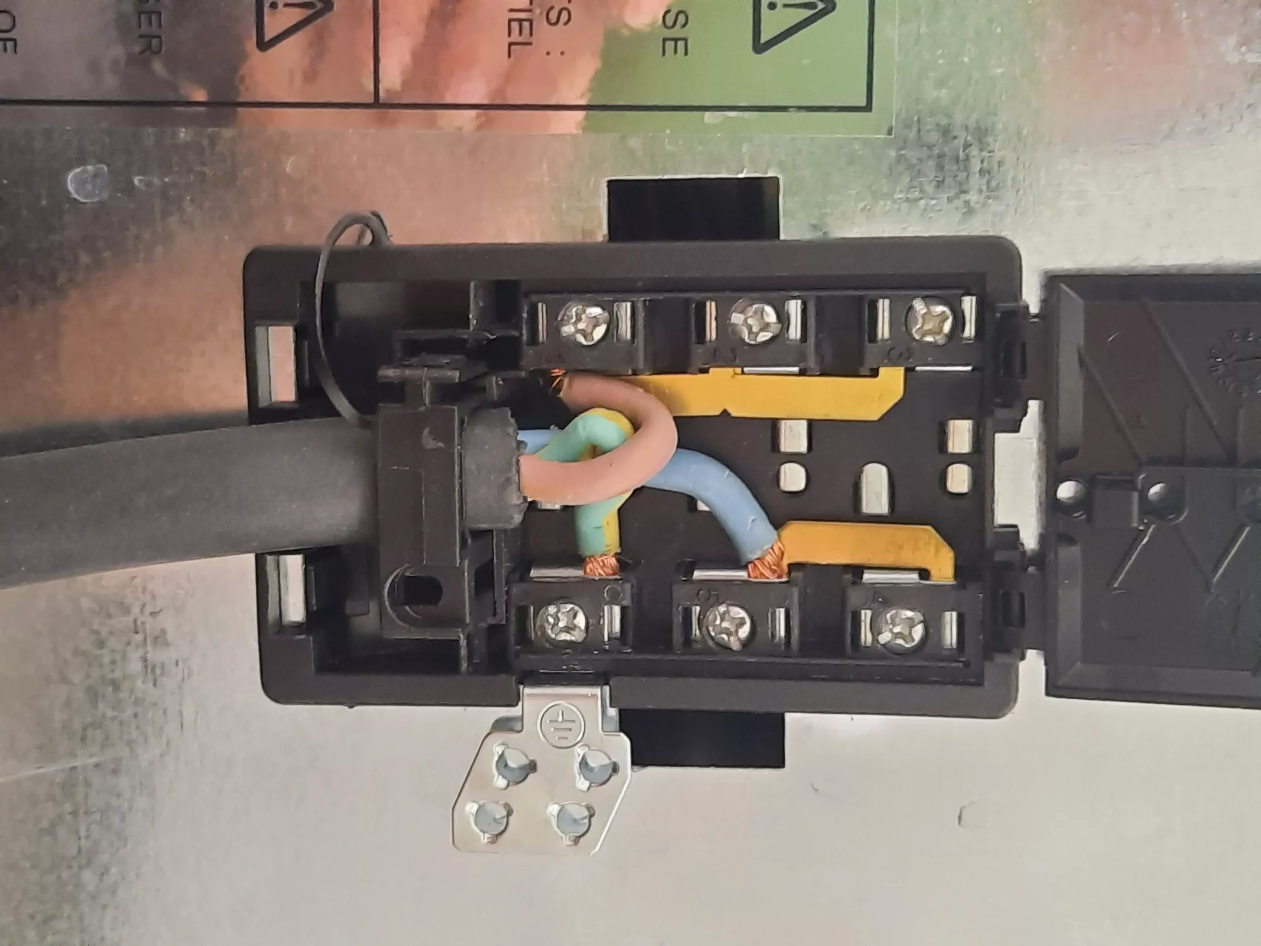 Le bornier d’alimentation (boîtier noir à l’arrière du four) peut être mal serré. Un faux contact crée une surchauffe qui peut faire fondre les connexions et provoquer un court-circuit.
