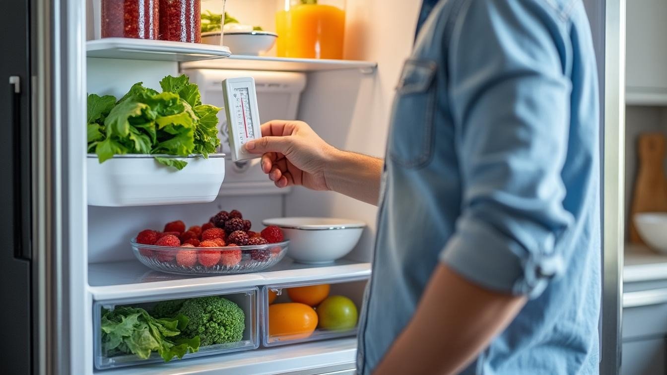 Pour vérifier la température réelle, placez un verre d’eau avec un thermomètre de cuisine à l’intérieur du réfrigérateur et attendez 2 heures. La température doit être entre 2 et 6 °C.