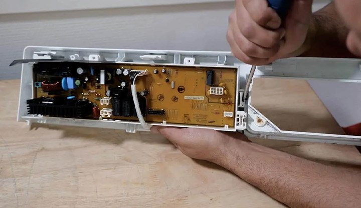 Réparer la carte électronique d’un sèche-linge pour relancer le cycle